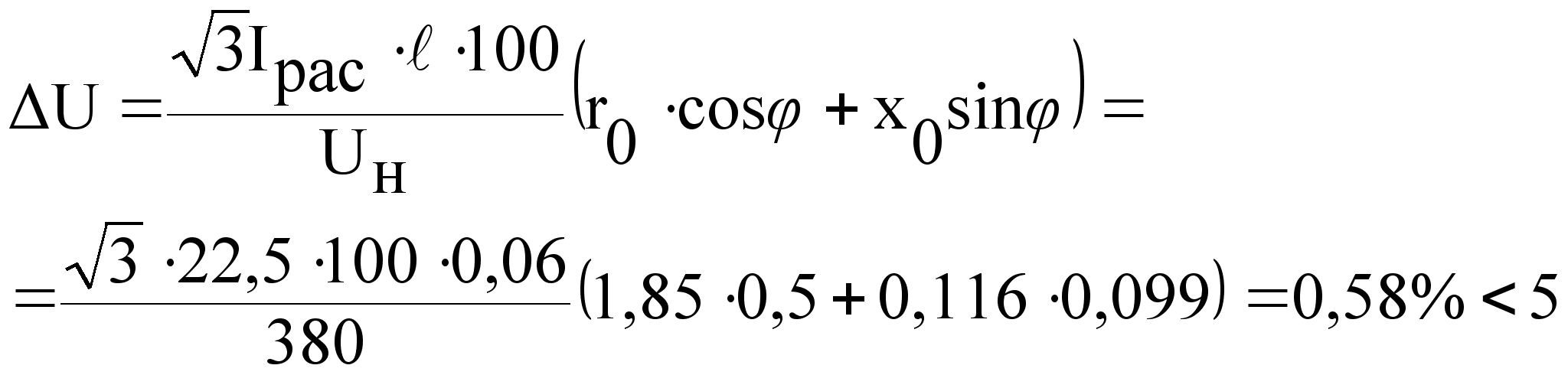 По условию Iд>= Iд/, следовательно, условие выполняется; 3) Проверяем кабель по потере напряжения