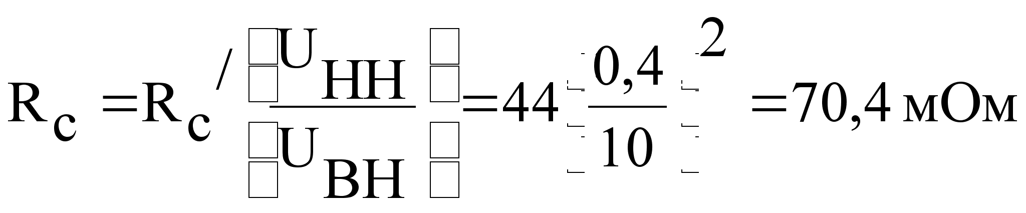 где Lc – длина линии до трансформатора, х0 – удельное индуктивное сопротивление линии, r0 – активное удельное сопротивление. Сопротивления приводятся к НН:
