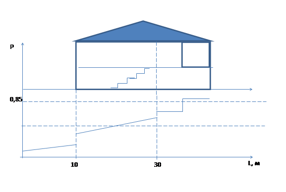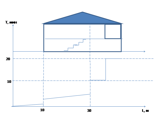 ![]() График зависимости вероятности обнаружения нарушителя от проделанного им пути График зависимости времени нарушителя на объекте от проделанного им пути