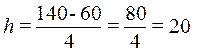 где Определение величины интервала по формуле при заданных k = 4, xmax = 140, xmin = 60:
