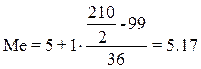 где хМе – нижняя граница медианного интервала, h – величина медианного интервала,