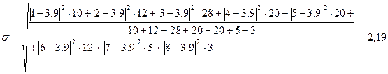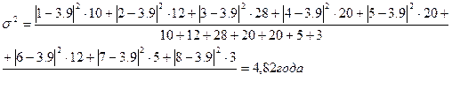 полусумме всех частот Расчет значения медианы по формуле: · для мужчин · для женщин · для всех Определим абсолютные и относительные показатели вариации стажа работы для мужчин: · абсолютные - размах вариации (R), среднее линейное отклонение (d), среднее квадратическое отклонение (σ), дисперсию (σ2 ). · относительные - коэффициент осцилляции (VR ), линейный коэффициент вариации (Vd ), коэффициент вариации (Vσ ).
