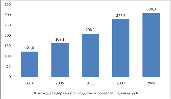 В 2004-2006 годах здравоохранение являлось одним из приоритетов государственной политики, что выразилось в увеличении доли расходов на здравоохранение в общих расходах федерального бюджета, которая за этот период возросла более чем в 2 раза: с 6,1 % в 2004 году до 11,5 % в 2006 году. Доля расходов на здравоохранение в ВВП России в 2006 году составляла 3,6 %. В 2007 году в рамках проекта выделено 15,4 млрд. руб. из федерального бюджета на закупку около 23000 единиц оборудования для муниципальных поликлиник и больниц. Одной из важных задач государства является борьба с заболеваниями социально значимого характера. Из федерального бюджета на финансирование данной программы в период 2007-2011 гг. будет выделено 35,1 млрд. руб. Если в предыдущие периоды ее реализации (2002-2006гг.) из федерального бюджета выделялось 18-19 % общего объема средств, то теперь предполагается тратить около 45 %. Решение демографической проблемы также является одним из приоритетных направлений государственной политики. В 2007 году на решение данной проблемы было выделено дополнительно 32,3 млрд. руб. в 2008 году - 43,9 млрд. рублей, в 2009 году - 47,6 млрд. рублей. С учетом расходов на материнский базовый капитал обязательства федерального бюджета по демографическому проекту составляют около 165 млрд. руб. ежегодно. Расходы на образование Статья 43 Конституции РФ закрепляет право каждого гражданина на образование в государственных и муниципальных учреждениях. Образование финансируется из бюджетов всех уровней бюджетной системы. Из федерального бюджета в основном финансируются высшее профессиональное образование и научные исследования в образовательной сфере. В 2007 году расходы на образование увеличились на 33 % и составили 277,9 млрд. руб, а в 2008 году на 11% и составили 308,9 млрд.руб. Кроме того, с 2006 года часть средств федерального бюджета в рамках приоритетного национального проекта «Образование» дополнительно направляется на трансферты в региональные бюджеты, в основном на поддержку школьного образования. Социальные трансферты Основное место в реестре расходов занимают обязательства по предоставлению трансфертов населению, включающие публичные расходные обязательства и стипендии, которые являются «прямыми» финансовыми обязательствами государства перед гражданами (пенсии, пособия, компенсации, иные социальные гарантии) и подлежат безусловному исполнению. В 2008 году такие обязательства составляют более 50% от общего объема расходных обязательств Российской Федерации. В России в 2007 году насчитывалось около 38,5 млн. пенсионеров, что составляет более 27 % населения. Другими словами, благосостояние четверти населения страны напрямую зависит от системы пенсионного обеспечения. Рост расходов бюджета на выплату пенсий в 2007 году составил примерно 15,6 % как и в 2006 году. В 2007 году на выплату пенсий из пенсионного фонда РФ было направлено 1725 млрд. руб. При этом изфедерального бюджета на финансирование выплат пенсий было выделено 959,7 млрд. руб. Кроме того, еще 146,6 млрд. руб. выделено на пенсии военнослужащим и членам их семей, а также лицам, приравненным к ним по пенсионному обеспечению. Расходы федерального бюджета на выплату пенсий военнослужащим в 2008 году составят 173,3 млрд. руб., что на 18% больше уровня 2007 года. В 2009 и 2010 годах эти расходы составят, соответственно, 211,8 млрд. руб. и 245,5 млрд. руб. Необходимость финансиро