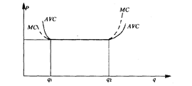 Рис. 2. Кривая AVC и MC в условиях олигополии в краткосрочном периоде Согласно закону уменьшающейся отдачи, если один из факторов производства (капитал) остается неизменным (напомним, что мы рассматриваем краткосрочный период), то по мере ввода в производство дополнительных единиц переменного фактора (труда) средние переменные издержки начинают падать. Затем они достигают своего минимума, и если не прекратить привлечение новых единиц труда, то AVC начнут возрастать. Но это верно, если мы считаем капитал как нечто неделимое. Но, положим, на заводе используется 25 станков, которые обслуживаются в смену 50 рабочими и производят один и тот же товар. Дневная производительность 25 станков – 100 единиц товара, а дневная оплата одного рабочего – 10 руб. Легко подсчитать величину средних переменных издержек: