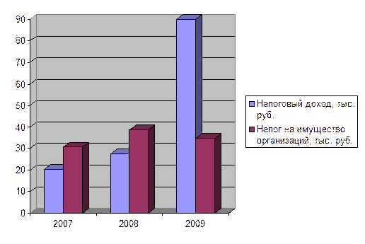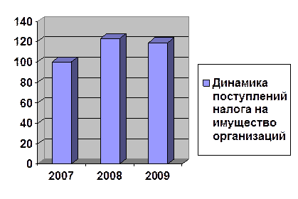 Поступления налога на имущество организаций имеют иную тенденцию, поступления с каждым годом увеличиваются: в 2008 г. сумма поступлений увеличилась на 18,47 % по сравнению с 2007 г., а в 2009 г. по сравнению с 2008 г. увеличивается на 24,2 % (рис. 10).