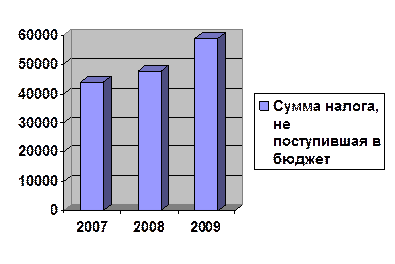 Рис. 12. Динамика роста поступлений налога на имущество организаций. Такие колебания объясняются суммами налога на имущество организаций, не поступивших в бюджет Республики Коми в связи с льготами (рис. 10). В 2008 г. в бюджет не поступило на 8,8 % больше, чем в 2007 г. Однако в 2009 г. сумма налога, не поступившая в бюджет, увеличилась на 23,3 %, что значительно повлияло на сумму поступлений налога в бюджет. Рис. 13. Динамика роста сумм налога, не поступивших в бюджет в сязи с применением льгот.