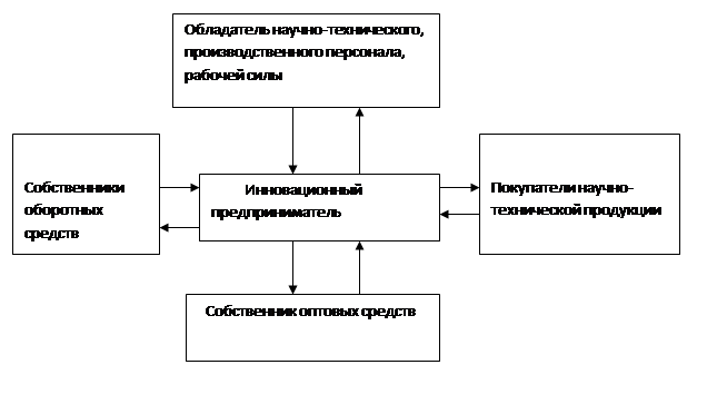 Предприниматель в своей деятельности руководствуется жестким алгоритмом проведения инновационной деятельности (рис 3). Рис.3. Схема инновационного предпринимательства Инновационное предпринимательство предполагает постоянный поиск нововведений: новых идей, новых продуктов, новых услуг, а также организационных форм по созданию и внедрению новшеств. Для нововведений нужна и новая организационная форма, а для выпуска продукции или услуги, наоборот, консервативная, устоявшаяся организационная форма, которая обеспечивает изготовление оснастки, закупку сырья, организацию производства и в конечном итоге – выпуск продукции. Противоречие заключается еще в том, что для проведения научных исследований нужны большие финансовые средства: например, при поиске материала с новыми свойствами необходимо проведение экспериментов, которые предполагают использование специального оборудования, квалифицированного персонала. Соблюдение этих условий обеспечивает тщательность и глубину исследования. В условиях инновационного предпринимательства важную роль играют малые фирмы. несмотря на то, что в развитых странах 95% расходов на научные исследования и разработки приходится на крупные фирмы и лишь 5% - на мелкие, именно последние нередко становятся пионерами в создании и освоении многих научно-технических достижений. Важнейшими преимуществами малых организационных форм в инновационной деятельности являются: - мобильность и гибкость в подходе к инновациям, высокая восприимчивость к принципиальным нововведениям; - узкая специализация научных поисков, разработка небольшого круга технических идей; - возможность первыми апробировать новую продукцию, чтобы затем перейти к массовому производству в крупных компаниях; - настойчивость и упорство, граничащее с одержимостью, оригинальность мышления, присущие мелким предпринимателям; - возможность рисковать, что совершенно неприемлемо для крупных компаний. Такие новаторские качества как инновационный тип мышления, предприимчивость, великолепное знание дела, умение привлекать хороших, прогрессивно мыслящих сотрудников наилучшим образом проявляются в условиях малого предприятия, малой фирмы. Преимуществом мелких фирм, занятых высокотехничными проектами, является их узкая специализация по научным направлениям, разработка небольшого круга технических идей. Кроме того, они ведут разработки главным образом на начальных этапах зарождения идей, когда еще не требуется значительных материальных и кадровых затрат. Одной из прогрессивных форм инновационного бизнеса является сотрудничество крупных и мелких фирм в научных исследованиях и разработках. Для крупных фирм – это возможность быстрого относительно недорогого получения результатов, которые впоследствии требуют лишь незначительной доработки. Кроме того, это снижение уровня риска при проведении этих исследований и разработок собственными силами. Кооперация малого и крупного бизнеса осуществляется по следующим направлениям: - непосредственно работа малых фирм по заказам крупных; - создание малых новаторских фирм самим крупным бизнесом; - включение мелких исследовательских фирм в комплекс крупных корпораций; - рисковое финансирование. Из перечисленных направлений наибольшее развитие получили последние два. Работа малых фи