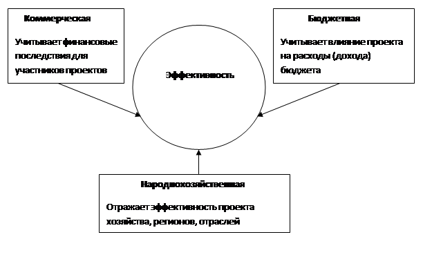 Оценка эффективности инновационных проектов Реализация инновационного проекта требует материальных и финансовых затрат. Она всегда связана с риском, поскольку нельзя заранее сказать, в какой мере проект выйдет на коммерциализацию и найдутся ли потребители для новой продукции или услуги. Поэтому этап предварительной оценки является важным звеном в инновационной деятельности. Несмотря на сложность оценки, она является необходимым фактором, снижающим риск инновационной деятельности. Осуществить экспертизу инновационного проекта на степень его реализуемости – это значит оценить социально-экономическую эффективность проекта на той стадии, когда мало достоверной информации. Поэтому и оценки должны быть интервальными: от оптимистического – до пессимистического прогноза. При оценке эффективности инновационных проектов предлагается анализировать несколько видов эффективности в зависимости от назначения проекта рис.5.