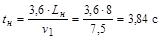 Производительность ПЭ , т/ч выбранного бульдозера: где V — объем призмы волочения, V=0,5BH2 =0,5∙3,64∙(1,48)2 =3,987 м3 , здесь В — ширина отвала, м; Н — высота отвала, м; kР — коэффициент разрыхления, kР = 1,05…1,35. kПР — поправочный коэффициент к объему призмы волочения, зависящий от соотношения ширины В и высоты Н отвала Н/В=0,41, а также физико-механических свойств разрабатываемого грунта, kПР =0,77; kВ — коэффициент использования машин по времени, kВ =0,8; ТЦ — продолжительность цикла, с; ТЦ =tН +tРХ +tХХ +tВСП , здесь tН — время набора материала, где LН — длина пути набора, LН =6…10 м; v 1 — скорость на первой передаче, v 1 =5…10 км/ч;