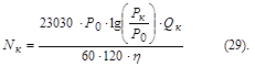 где η=0,8 — КПД привода; Р0 — начальное давление воздуха, Р0 =1 атм; РК — давление, которое должен создавать компрессор, атм.