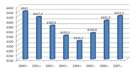 Развитие экономики стимулировало восстановление занятости. В стране, по оценке, создано 153,4 тыс. рабочих мест (прогноз - 140,1 тыс.). Численность занятых в экономике начиная с 2005 г. увеличивалась и при прогнозе 4375-4448 тыс. чел. составила 4421,5 тыс. чел [приложение А]. В 2007 г., как и в предшествующие годы, наблюдалась тенденция превышения количества принятых на работу (839,5 тыс. чел.) над количеством уволенных (813,8 тыс. чел.). Удельный вес занятых в сфере услуг, по оценке, достиг 53,6%, но по-прежнему является невысоким.