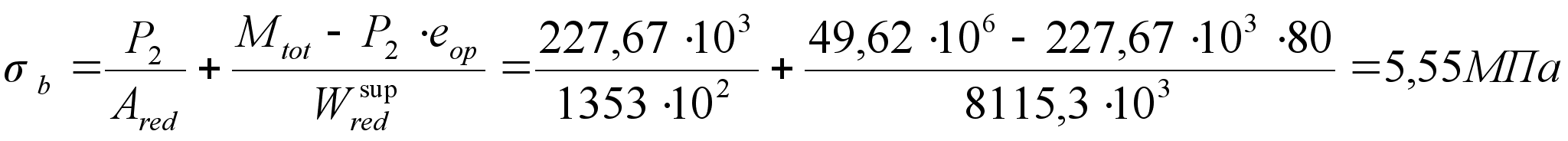 Напряжение на уровне крайнего верхнего волокна (y=h-yred=110мм) будет равно:
