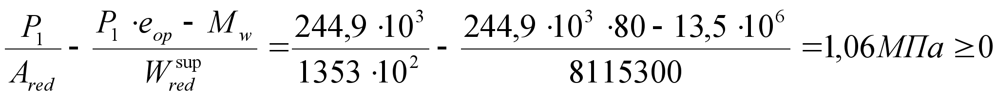 При действии Р1 в стадии изготовления напряжения в верхней зоне бетона равно