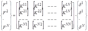 где суммирование распространяется на все стержни, соединяющиеся с узлом i . Полная система уравнений равновесия для стержневой системы с N узлами в матричной форме примет вид: