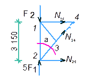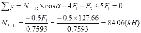 Значения усилий определяем методом сечений. За расчетную нагрузку фермы принимается расстояние между осями поясов. Уклоном верхнего пояса фермы при i = 0,015 можно пренебречь. cos