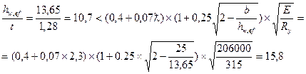 где hw,ef = h – t – R= 16,93 – 1,28 – 2,0 = 13,65