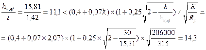 где hw,ef = h – t – R= 194,3 - 14,2 - 22 = 158,1мм = 15,81 см