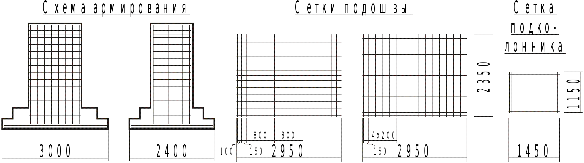 Рисунок 4 – Монтаж арматурных сеток и каркасов фундамента Ф1 Считаем, что фундамент Ф1 армируется двумя горизонтальными сетками (подошва) и вертикальной закольцованной сетки, выполненной из четырех отдельных вертикальных сеток (подколонник, см рис. 4).