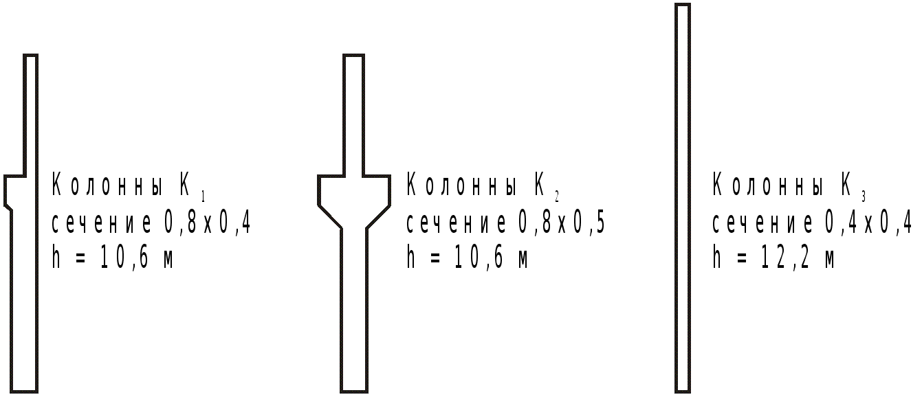 Рисунок 7 – Колонны для здания высотой 9,6 м. Количество колонн одного типа равно суммарному количеству одинаковых фундаментов, расположенных в соответствующих рядах (см. рис.1).