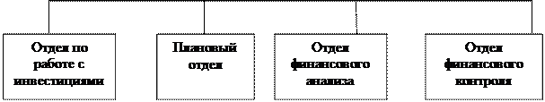 Для работы в финансовом отделе на малых и средних фирмах, как правило, привлекаются финансовые менеджеры широкого профиля — работники, осуществляющие практически все функции финансового управления фирмой. На крупных предпринимательских фирмах структура финансовой службы более сложная, так как финансовые потоки таких фирм связаны не только с производственной и финансовой деятельностью, но и с участием в капитале других предпринимательских организаций. Функции финансовой службы расширяются в зависимости от того, насколько возрастают экономические и финансовые возможности фирмы. Для работы в финансовой службе крупных предпринимательских структур привлекаются как финансовые менеджеры широкого профиля, так и функциональные финансовые менеджеры. Первые обычно привлекаются для общего руководства финансовой деятельности, а вторые - как исполнители конкретных задач в финансовом управлении. Функциональный финансовый менеджер является узким специалистом, осуществляющим специализированные функции управления в одной из сфер финансовой деятельности фирмы (например, менеджер по управлению инвестициями, антикризисный менеджер, риск-менеджер и т.п.).[7] На крупных фирмах финансовая служба представлена, как правило, финансовым департаментом, который включает в себя несколько специализированных отделов, примерная схема такой структуры приведена на рисунке 2. Рис.2 Финансовая служба на крупных предпринимательских фирмах