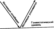 (Организм в равновесии) Рис. 6.1. Схема теории импульсов. либо другого нужного организму компонента автоматически приводит к появлению соответствующей потребности и к возникновению биологического импульса, который как бы толкает индивидуума к его удовлетворению (рис. 6.1). Возникшее таким образом первичное побуждение вызывает серию координированных действий, направленных на восстановление равновесия. Чем дольше баланс остается нарушенным, тем сильнее мотивация и тем сильнее активируется организм. Равновесие же восстанавливается лишь после удовлетворения данной потребности; а вслед за этим исчезают вызванные этой потребностью побуждение и активация. Поддержание равновесия, при котором организм не испытывает никаких потребностей, называется гомеостазом. Отсюда гомеостатическое поведение - это такое поведение, которое направлено на устранение мотивации путем удовлетворения вызвавшей ее потребности. Чтобы лучше понять механизм гомеостатического процесса, можно было бы сравнить его с термостатической системой, установленной в доме для поддержания постоянной температуры в его комнатах. Термостат включает отопление, если температура опускается ниже установленного порога, и отключает его, когда температура снова достигает нужного уровня. Психофизиологи полагают, что потребности выявляются внутренними «гомеостатами», которые помогают нам удовлетворять эти потребности, чтобы поддерживать организм в состоянии равновесия. Итак, (теория биологических побуждений – это теория простой и прямой мотивации, позволяющая объяснить, каким образом удовлетворяются биологические потребности. Однако эта теория может объяснить далеко не все виды мотиваций человека. Как, например, понять то, что 242 уже абсолютно сытый человек соблазняется и съедает еще кусок пирога или на вечеринке продолжает пить, хотя он давно утолил жажду? Кажется очевидным, что в таких случаях восприятие определенных внешних объектов играет роль стимула, который может быть таким же значительным, как и само внутреннее побуждение. «Гидромеханическая» модель, предложенная Лоренцом (Lorenz) для объяснения инстинктивных форм поведения, позволяет, хотя и не полностью, объяснить связи существующие между физиологическим состоянием организма и раздражителями, поступающими из окружающей среды (см. документ 6.2). Но, с другой стороны, как объяснить желание включить радиоприемник или телевизор, когда нет определенной цели? И тем более, как понять предпочтение, оказываемое некоторыми людьми фильмам ужасов, сильным ощущениям на «американских горках» или во время прыжков с парашютом? По-видимому, в таких случаях человек, лишенный раздражителей, ищет ситуацию, которая позволила бы ему узнать что-то новое или испытать какое-то возбуждение. Эту потребность в возбуждении не объясняет гомеостатическая модель в рамках теории биологической мотивации -согласно этой модели, мы стремились бы лишь уменьшить раздражители, связанные с чувством голода, жажды, боли и т. п. Теория оптимальной активации Итак, нужно было разработать теорию, которая позволила бы объяснить то, что наш организм иногда стремится снизить уровень активации, вызванной появлением какой-либо потребности или информационной перегрузкой, но в то же время он стремится усилить активацию, когда она слишком слаба для т