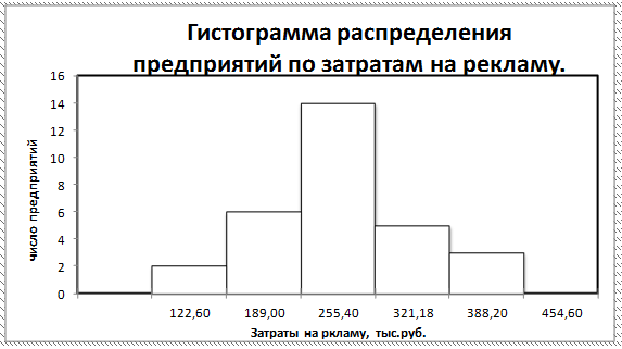 Для построения интервального ряда необходимо подсчитать число предприятий, входящих в каждую группу (частоты групп). Процесс группировки единиц совокупности по признаку затраты на рекламу представлен во вспомогательной (разработочной). Разработочная таблица для построения интервального ряда распределения и аналитической группировки. Таблица 3