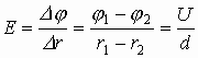 Е - величина напряженности электрического поля, создаваемого зарядом Q на расстоянии r.