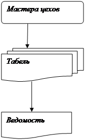 На коксохимическом производстве необходимо ежемесячно составлять ведомость по расчету заработной платы, содержащую 2 показателя: - сумма начисленной заработной платы по участку; - сумма заработной платы по цеху. Первый показатель рассчитывается путем накопления сумм, касающихся отдельного сотрудника участка, а второй – сложением сумм заработных плат по всем участкам, входящим в каждый цех. Входной оперативной информацией служит табель, содержащий следующие реквизиты (условная форма): код цеха, код участка, табельный номер, сумма заработной платы. Необходимо разместить данные реквизиты в первичном документе. Справочной информацией служат следующие реквизиты: код цеха, код участка, табельный номер сумма заработной платы. В результате следует получить ведомость со следующими реквизитами: код цеха, код участка, сумма заработной платы. Организационно-экономическая сущность задачи. 1. Наименование задачи: расчет начисления заработной платы по цехам и участкам. 2. Место решения задачи: табельная ОАО «НЛМК», коксохимическое производство. 3. Цель решения задачи: определение суммы заработной платы по цехам и участкам. 4. Периодичность решения задачи: ежемесячно до 4 числа каждого месяца. 5.Для кого предназначено решение задачи: для руководства комбината. 6. Источники получения исходных документов: мастера цехов. 7. Информационная модель задачи.