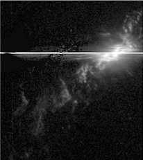 Наблюдения так называемых систем двойных звезд, когда в телескоп видна лишь одна звезда, дают основание считать, что невидимый партнер - черная дыра. Звезды этой пары расположены так близко одна к другой, что невидимая масса «высасывает» вещество видимой звезды и поглощает его. В некоторых случаях удается определить время оборота звезды вокруг ее невидимого партнера и расстояние до невидимки, что позволяет рассчитать скрытую от наблюдения массу. Первый кандидат на такую модель - пара, обнаруженная в начале 70-х годов. Она находится в созвездии Лебедя (обозначена индексом Cygnus XI) и испускает рентгеновские лучи. Здесь вращаются горячая голубая звезда и, по всей вероятности, черная дыра с массой, равной 16 массам Солнца. Другая пара (V404) имеет невидимую массу в 12 Рис. 2 Cygnus XI солнечных. Еще одна подозреваемая пара - рентгеновский источник (LMCX3) в девять солнечных масс находится в Большом Магеллановом Облаке. Все эти случаи хорошо объясняются в рассуждениях Джона Мишелла о «темных звездах». В 1783 году он писал: «Если светящиеся тела вращаются вокруг невидимого чего-то, то мы должны быть в состоянии из движения этого вращающегося тела с известной вероятностью сделать вывод о существовании этого центрального тела». Гипотезы и парадоксы Общая теория относительности, как известно, предсказала, что масса искривляет пространство. И уже через четыре года после опубликования работы Эйнштейна этот эффект был обнаружен астрономами. При полном солнечном затмении, проводя наблюдения с телескопом, астрономы видели звезды, которые на самом деле были заслонены краем черного лунного диска, покрывшего Солнце. Под действием солнечной гравитации изображения звезд сместились. (здесь поражает еще и точность измерения, потому что сместились они меньше, чем на одну тысячную градуса!) Астрономы теперь точно знают, что под влиянием «линзы тяготения», которую представляют собой тяжелые звезды и, прежде всего черные дыры, реальные позиции многих небесных тел на самом деле отличаются от тех, что нам видятся с Земли. Далекие галактики могут выглядеть для нас бесформенными и в виде «капсулы». Это означает: тяготение столь велико и пространство так закручено, что свет проходит по кругу. Поистине там можно увидеть то, что происходит за углом. Вообразим совершенно невероятное: некий отважный космонавт решил направить свой корабль к черной дыре, чтобы познать ее тайны. Что он увидит в этом фантастическом путешествии? По мере приближения к цели часы на космическом корабле будут все больше и больше отставать - это вытекает из теории относительности. На подлете к цели наш путешественник окажется как бы в трубе, кольцом окружающей черную дыру, но ему будет казаться, что он летит по совершенно прямому тоннелю, а вовсе не по кругу. Но космонавта ждет еще более удивительное явление: попав за «горизонт событий» и двигаясь по трубе, он будет видеть свою спину, свой затылок... Общая теория относительности говорит, что понятия «вовне» и «внутри» не имеют объективного смысла, они относительны также, как указания «налево» или «направо», «вверх» или «вниз». Вся эта парадоксальная путаница с направлениями очень плохо согласуется с нашими повседневными оценками. Как только корабль пересечет границу черной дыры, люди на Земле уже не смогут ничего увидеть из того, что там будет прои