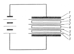 Теперь можно писать новую теорию электролиза. Прежде всего говорить о притяжении полюсов, как это предполагал Дэви, нет никаких оснований. Жидкости, поддающиеся электролизу, состоят из частиц, имеющих противоположные заряды. Под действием электрического тока частица, связанная с другой в молекулу, испытывает действие других противоположно заряженных частиц и вступает с ними в соединение. Путем таких перескоков и обменов частица движется вперед. Движется до тех пор, пока впереди есть противоположно заряженные частицы, с которыми она может соединиться. Только у электродов она не окружена полностью другими частицами и, следовательно, только здесь на нее действуют неуравновешенные силы. Здесь частица выталкивается наружу, "где и выделяется". Теория Фарадея доказывала, в каких направлениях следует вести исследования. Стало понятно, что химическое преобразование вещества происходит только у электродов. Зная место такой реакции, можно определить и даже измерить объем участвующих в ней веществ. Можно сопоставить количество выделившихся у электродов веществ с величиной тока и временем его пропускания и подойти к количественной разгадке законов электролиза. В сентябре 1832г. Фарадей уже мог сформулировать первый закон электролиза. Экспериментальные данные не оставляли никаких сомнений в существовании зависимости между количеством электричества и величиной его химического действия. Но Фарадей не спешит. Он как всегда работает методично. Чтобы определить зависимость между количеством электричества и объемом веществ, образующихся в результате электрохимической реакции, надо сначала выполнить кое-какие подготовительные работы. 14 сентября Фарадей доказывает, что количество электричества не зависит от напряжения. Несколько раз он повторял опыты с батареей, состоящей то из семи, то из пятнадцати лейденских банок, каждую из которых он заряжал тридцатью оборотами машины, а затем подключал батарею к электрометру. Стрелка электрометра через определенное время всегда отклонялась на пять с половиной делений. Из чего следовало, что "отклоняющая сила электрического тока прямо пропорциональна прошедшему количеству электричества независимо от напряжения последнего". На другой день Фарадей собирает маленький, или, как он его называет, "стандартный" вольтов столб. Точно как всегда регламентирует все условия эксперимента: диаметр платиновой и цинковой проволочек, глубину их погружения в раствор, концентрацию серной кислоты в растворе. При работе с такой батареей он определяет, что при ее разряде стрелка электрометра отклоняется на пять с половиной делений за восемь отсчетов промежутков времени по хронометру. Так он определяет одинаковые количества электричества от разных источников. Далее Фарадей обратил внимание, что величина бурого пятна, расплывающегося на пропитанной раствором йодистого калия фильтровальной бумаге вокруг прижатой к ней платиновой проволоки, одинакова, если пропускать одно и то же количество электричества от разных источников. В этот день он убедился, что величины пятна (то есть величина химического действия тока) прямо пропорциональны времени пропускания тока, иначе говоря, количеству электричества. Вот она, та закономерность, которую он искал. Но пока Фарадей записывает ее как результат опыта. По его 