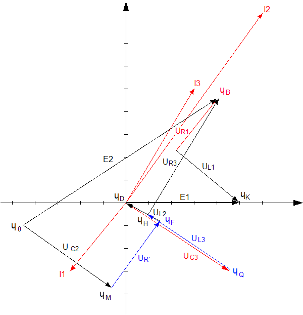 1.9 построить лучевую диаграмму токов и топографическую диаграмму напряжений для преобразованной схемы.