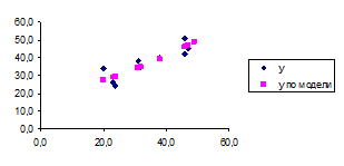 Таким образом, если объем капиталовложений составит 39,2 млн. руб., то ожидаемый объем выпуска продукции составит около 48 млн. руб. Зададим доверительную вероятность Для этого нужно рассчитать стандартную ошибку прогнозирования:
