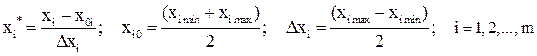 где θi – параметры модели; Xi – факторы (независимые переменные); Yi – отклик. 4. Для упрощения обработки результатов эксперимента, производим кодирование значений факторов по выражению (15):