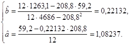По расположению точек на поле корреляции можно предположить наличие прямой линейной связи между темпом прироста капиталовложений и выпуском валовой продукции. 2 . Рассчитаем оценки параметров линейной модели