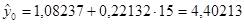 y =1,08+0,22 x Коэффициент детерминации(