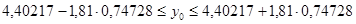 Таким образом, если темп прироста капиталовложений будет равен 15%, выпуск валовой продукции составит в среднем 4,4 млн.руб. Построим 90-процентный доверительный интервал прогноза: