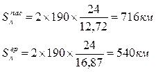 где t осн - время нахождения локомотива на станциях основного депо, ч (принимается по электровозам – 2,5 и по тепловозам – 3,0 ч); t об - время нахождения локомотива на станциях оборотного депо (принимается с учетом проведения технического осмотра по электровозам – 2,0 ч и по тепловозам – 2,5 ч); t см - время простоя локомотива на станциях смены бригад (принимается при обслуживании пассажирского движения 20 минут и грузового движения – 30 минут на один пункт); k - количество смен на участке обращения за оборот (принимается: при обслуживании пассажирского движения k = 4, при обслуживании грузового движения k = 2). Среднесуточный пробег локомотива , км/сут, в пассажирском и грузовом движении равен: