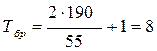 где S бр – пробег одной бригады за месяц, км. Месячная норма пробега бригады: S бр =2 l бр k S бр =2*190*16=6080 км, где 2 l бр - удвоенная длина участка обслуживания локомотивными бригадами, км.; k – количество поездок бригады в месяц. Количество поездок бригады в месяц может быть определено из следующего выражения: k =Тср /Тбр , k =165,2 /10=16 поездок, где Тср – среднемесячная норма рабочего времени, час (принимается действующая норма на текущий год). На маневровой работе плановая численность локомотивных бригад определяется исходя из количества локомотивов, работающих на маневрах, Мм и числа бригад, обслуживающих один локомотив, K бр :
