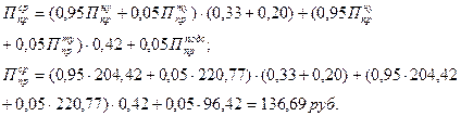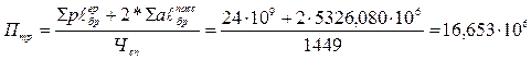 Гр. ΣМSобщ. = 12726000тыс. лок-км. Пасс. ΣNSобщ. = 9143104 тыс. лок-км. ФОТ экипир. год = 1523430 тыс. руб. ФОТТО год = 3705150,96 тыс. руб. Еэкипир гр = 19,089 тыс. руб. Еэкипир пасс = 137,146 тыс. руб. Еэкипир ман = 12885 тыс. руб. Гр.8 Пассажирское: (NSпасс / (MSгр + NSпасс )) * ФОТэкипир. год = (9143104 /(12 726000 + 9143104)) * 1523430 = 636,920 тыс.руб. Грузовое: (MSгр / (MSгр + NSпасс )) * ФОТэкипир. год ) = (12726000 /(12726000 + 9143104)) * 1523430 = 886,509тыс.руб. Гр. 7 Пассажирское: гр.8 + Еэкипир пасс = 636,920+137146=137,782 тыс. руб. Грузовое: гр.8 + Еэкипир гр = 886,509+19,089=905,598 тыс. руб. Маневровое: Еэкипир ман = 12885 тыс. руб. Гр.10 Пассажирское: NSпасс / (MSгр + NSпасс ) * ФОТТО год = (9143104 /(12726000 + 9143104)) * 3705150,96 = 1549,061 тыс.руб. Грузовое: MSгр / (MSгр + NSпасс ) * ФОТТО год = (12726000 /(12 726000 + 9143104)) * 3705150,96 = 2156,089 тыс.руб. Гр.12 = гр.3+гр.5+гр.6+гр.7+гр.9+гр.11 Гр. 13 = гр.4+гр.8+гр.10 Гр. 14 распределяется пропорционально суммам з/платы основных прямых расходов. 19406,69/(19406,69+60007,04+41166,53)*(53724645+67714)=8657 тыс. руб. 60007,04/(19406,69+60007,04+41166,53)*(53724645+67714)=26769 тыс. руб. 41166,53/(19406,69+60007,04+41166,53)*(53724645+67714)=18364 тыс. руб. Гр. 15 60007,04/(19406,69+60007,04+41166,53)*(35697376+61410)=17795 тыс. руб. 41166,53/(19406,69+60007,04+41166,53)*(35697376+61410)=12208 тыс. руб. 19406,69/(19406,69+60007,04+41166,53)*(35697376+61410)=5755 тыс. руб. |