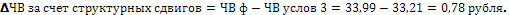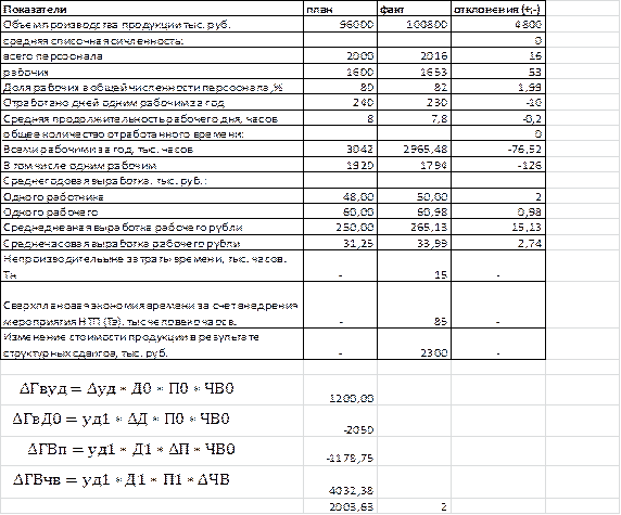 - это отражение непроизводительных затрат времени Разность между фактическим показателем и условным 3 показывает изменение часовой выработки за счет структурных сдвигов.