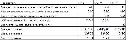 Таким образом по рабочим повременщикам абсолютный перерасход ФЗП составил 37 тыс. руб. Для факторного анализа повременной заработной платы можно использовать следующие факторные модели.