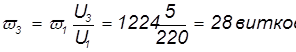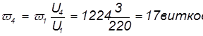 3.3.8 Принимаем для первичной и вторичной обмоток провод ПЭВ-1 со следующими данными /13/: а) диаметры проводов без изоляцииd1=0,53 мм; d2=0,5 мм; d3=0,6 мм; d4=0,6 мм; б) диаметры проводов с изоляциейdи1=0,58 мм; dи2=0,55 мм; dи3=0,65 мм; dи4=0,65 мм. Определяем число витков первичной и вторичной обмоток, приняв магнитную индукцию сердечника Bc =1,35 Тл /13/: