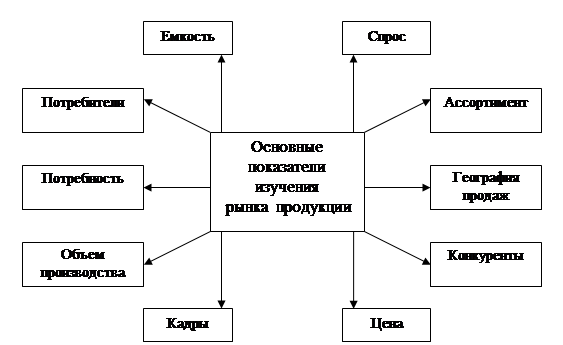 Рисунок 2 – Основные показатели изучения рынка Рыночные исследования выступают как информационная основа достижения таких целей, как реализация определенного объема продаж, создание и выведение на рынок новых товаров, увеличение рыночной доли. Постановка этих целей предполагает, что речь идет о рынке конкретного товара. В данной связи, раскрывая содержание рыночного исследования, в первую очередь необходимо остановиться на изучении товарной структуры рынка. [6, с.19] Рыночные исследования требуются, если производитель товаров хочет сориентироваться относительно рынков, на которых он может реализовать свою продукцию, и фактов, воздействующих на данные рынки. Иными словами, производителей и, прежде всего, маркетинговые службы многих предприятий интересует рынок сбыта продукции. Для определения потребности в проведении маркетинговых исследований все организации должны непрерывно проводить мониторинг их внешних сред, используя мониторинговую систему. Главной целью использования мониторинговой системы является предоставление оперативной информации руководству организации. Такая информация позволяет руководству оценить, соответствует ли результаты их текущей оперативной деятельности запланированным целям; оказали ли влияние принятые законом на покупательную способность потребителей, на деятельность предприятий отрасли; имели ли место изменения системы ценностей потребителей и их стиля жизни; были ли использованы конкурентами новые стратегии. Руководство организацией осуществляя мониторинг внешней среды, получает информацию из множества источников – от акционеров, которые могут выражать претензии к низкому качеству продукции, от дилеров, которые могут информировать, что организация уступает позиции на рынке конкурентам и т.д. Однако, эта информация скорее всего касается проблем – симптомов, а не базовых проблем. Задачи исследователей как раз и является выявление базовых проблем, которые лежат в основе проблем симптомов. Ясное, четкое изложение проблемы является ключом к проведению успешного маркетингового исследования. Зачастую клиенты маркетинговых фирм сами не знают своих проблем. Они констатируют, что объем продаж, падает, рыночная доля уменьшается, но это только симптомы, а важно выявить причины их проявления. Классической ситуацией является случай, когда маркетинговое исследование не адресовано реальной проблеме. [7, с.72] Чтобы избежать подобной ситуации, необходимо исследовать все возможные причины появившихся симптомов. Часто в этих целях проводятся разведочные исследования. При проведении маркетинговых исследований сталкиваются с двумя типами проблем: проблемы управления маркетингом и проблемы маркетинговых исследований. Первые появляются в двух случаях. Во-первых, когда возникают симптомы недостижения целей маркетинговой деятельности. Во-вторых, существует вероятность достижения целей, однако менеджеру надо выбрать такой курс действий, который даст возможность в полной мере воспользоваться благоприятными обстоятельствами. Проблемы маркетинговых исследований определяются требованиями предоставления руководителям и специалистам по маркетингу соответствующей, точной и непредвзятой информации, необходимой для решения проблем управления маркетинговой деятельностью. Формули