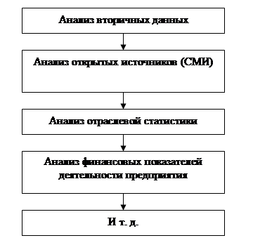 Рисунок 4 - Система анализа маркетинговой информации Статистический банк - совокупность современных методик статистической обработки информации, позволяющих наиболее полно вскрыть взаимосвязи в рамках подборки данных и установить степень их статистической надежности. Эти методики позволяют руководству получать ответы на вопросы типа: - Что представляют собой основные переменные, оказывающие влияние на мой сбыт, и какова значимость каждой из них? - Что произойдет со сбытом, если цену товара поднять на 10%, а расходы на рекламу - на 20%? - Какие черты являются наиболее вероятными показателями того, что данные потребители будут покупать мой марочный товар, а не товар конкурента? - По каким переменным лучше всего сегментировать мой рынок, и сколько его сегментов существует? Банк моделей - набор математических моделей, способствующих принятию более оптимальных маркетинговых решений деятелями рынка. Каждая модель состоит из совокупности взаимосвязанных переменных, представляющих некую реально существующую систему, некий реально существующий процесс или результат. [13, с.124] При постановке целей маркетинговых исследований задается вопрос: « Какая информация необходима для решения данной проблемы?» Ответ на этот вопрос определяет содержание целей исследования. Таким образом, ключевым аспектом определения целей исследования является выявление специфических типов информации, полезные менеджерам при решении проблем управления маркетингом. Первой задачей выбора методов проведения маркетинговых исследований, что является начальным этапом разработки плана маркетинговых исследований, является ознакомление с отдельными методами, которые могут использоваться на отдельных его этапах. Затем с учетом ресурсных возможностей выбирается наиболее походящий набор этих методов. Наиболее широко используемыми методами проведения маркетинговых исследований являются методы анализа документов, методы опроса потребителей (всю совокупность которой с определенной долей условностей можно назвать методами социологических исследований), экспертной оценки и экспериментальные методы. [14, с.99] Обычно при проведении маркетинговых исследований используется информация, полученная на первичных и вторичных данных (таблица 1). Первичные данные получаются в результате специально проведенных для решения конкретной маркетинговой проблемы так называемых полевых маркетинговых исследований; их сбор осуществляется путем наблюдений, опросов, экспериментальных исследований, выполняемых под частью общей совокупности исследуемых – выборной. Таблица 1 - Сравнительная характеристика первичной и вторичной информации