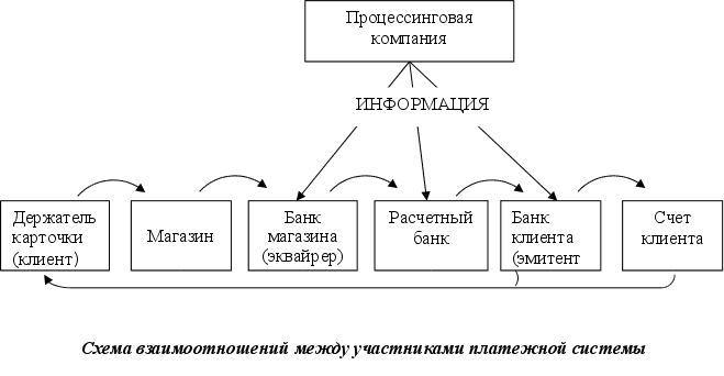 Количество ассоциированных торговых предприятий и учреждений сервиса, принимающих карточки ассоциаций «Мастер Кард» и «Европей», достигает 12 млн. (в Европе – 3 млн.). Общий годовой объем операций составил в 1993 году 320,6 млрд. долларов, а количество карточек в обращении – 227,9 млн. (из них около 100 млн. – карточки системы «Европей»). Ассоциация «Мастер Кард» явилась разработчиком ряда технических и организационных мероприятий, которые были впоследствии переняты другими компаниями банковских карточек. В частности, она первой в 1983 г. поместила на карточке лазерную голограмму, что затруднило подделку и существенно повысило надежность карточек. В 1984 г. ассоциация ввела в эксплуатацию две мощные коммуникационные системы, обеспечивающие обмен информацией и осуществление расчетов: «Бэнкнэт» (Banknet) (авторизация и денежные расчеты для 5 млн. торговых предприятий) и сеть электронных терминалов в торговых точках («МАРР» - «Master Card Point-of-Sale-Programm» с мощностью 11 млн. операций в день. В 1987 г. ассоциация купила крупнейшую в Северной Америке сеть банкоматов «Сиррус» (Cirrus). В 1988 г. «Мастер Кард интэрнешнл» подписал соглашение о сотрудничестве с «Еврокард интернэшнл» (Eurocard International), переименованной впоследствии в «Европей интернешнл» (Europay International). Этот шаг позволил «Мастер Кард» значительно расширить количество участников системы и сферу применения карточек, что усилило ее конкурентные позиции в европейском регионе и других частях мира. «Европей интернешнл» была образована в сентябре 1992 года в результате слияния трех компаний - «Еврокард интернэшнл» (Eurocard International), «Еврочек интернэшнл» (Eurocheque International), «Еврочек интернэшнл холдингс» (Eurocheque International Holdings). В капитале компании участвуют финансовые институты 22 стран Европы. Она специализируется на предоставлении участникам платежных услуг по расчетам банковскими карточками и еврочеками. Соглашение с «Мастер Кард» создало объединенную инфраструктуру, включающую банки, предприятия торговли, банковские автоматы и электронные терминалы. Структура управленческих органов международных карточных ассоциаций определяется масштабами их деятельности. Так, «Виза интернешнл» имеет несколько дирекций, каждая из которых отвечает за деятельность ассоциации в определенном районе мира: отдельную зону составляют США, еще одну – Европа – Средний Восток – Африка и т.д. «Мастер Кард» имеет единый совет директоров, но треть мест в нем принадлежит иностранным финансовым институтам. Эта ассоциация располагает представительствами в семи европейских странах. Международные системы активно проводят операции между собой. Схема расчетов при этом представлена в приложении 1. Карты международных систем появились в СССР еще в 1969 году. В Советском Союзе начала создаваться сеть предприятий, принимающих эти карты в качестве платежного средства. Именно в 1969 году было подписано первое соглашение с компанией Дайнерс Клаб. В 1974 году на советском рынке появилась «Америкэн Экспресс», в 1975 году – «Виза» (тогда-«Бэнк Америкард») и Еврокард, в 1976 – японская «Джей-Си-Би». С советской стороны все эти соглашения подписывались ВАО «Интурист», которое и организовывало расчеты по пластиковым карточкам в валютных магазинах «Березка» и гостиницах. Первым советским эмитентом международных карточек был Внешэкономбанк, выпустивший в 1989 г