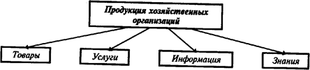 Таблица 1.1 Влияние связей на состояние организаций 3. Общие понятия хозяйственной организации Как уже отмечено, хозяйственные организации создаются для удовлетворения потребностей и интересов человека и общества во внешней для организации среде. Данные организации могут производить продукцию в. виде товара, услуг, информации или знаний (рис. 1).