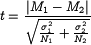 Где M1 M2 - средние арифметические,σ1 σ2 - стандартные отклонения, а N1 N2 – размеры выборок. Количество степеней свободы рассчитывается как