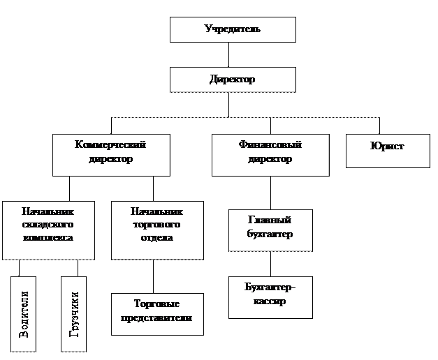 Рис. Организационная структура торговой организации ООО «Окно» Рассмотрим выполнение функциональных обязанностей персонала ООО «Окно». Директор ООО «Окно» осуществляет оперативное руководство деятельностью общества и наделяется всеми необходимыми полномочиями для выполнения этой задачи. Директор осуществляет свою деятельность в строгом соответствии с действующим законодательством и Уставом ООО «Окно». Основные функции директора объекта исследования: 1. Контролирует реализацию планов предприятия, направленных на организацию сбыта продукции в установленные сроки, в количестве и ассортименте, предусмотренном планом. 2. Участвует в формировании стратегических планов развития предприятия. 3. Обеспечивает выполнение планов продаж. 4. Развивает прибыльные новые направления одновременно с расширением существующего бизнеса. 5. Налаживает взаимовыгодные отношения со стратегическими и новыми клиентами. 6. Осуществляет взаимодействие ключевыми клиентами. 7. Ставит четкие и выполнимые задачи перед непосредственными подчиненными, которые соответствуют целям предприятия. 8. Анализирует ход выполнения поставленных задач и вносит соответствующие коррективы. 9. Анализирует отчеты по продажам по каждому направлению как команды в целом, так и по каждому сотруднику. 10. Отслеживает соблюдение ценовой политики . 11. Реализует программы, направленные на продвижение продукции. 12. Бюджетирование: разрабатывает, согласует и контролирует бюджет предприятия. 13. Кадровая работа: Оперативное руководство сотрудниками предприятия, оценка эффективности работы, оценка ресурсов для выполнения необходимого объема работы, прием и увольнение сотрудников. 14. Разработка документов: Должностные инструкции, внутренние документы. Коммерческий директор: 1. Осуществляет руководство финансово-хозяйственной деятельностью предприятия в области материально-технического обеспечения, закупки и хранения продукции, сбыта продукции на рынке и по договорам поставки, транспортного и административно-хозяйственного обслуживания. 2. Организует участие подчиненных ему служб и структурных подразделений в составлении перспективных и текущих планов производства и реализации продукции, определении долговременной стратегии коммерческой деятельности и финансовых планов предприятия, а также в разработке стандартов качества хранения алкогольной продукции и транспортирования, реализация продукции. 3. Принимает меры по своевременному заключению хозяйственных и финансовых договоров с поставщиками и потребителями продукции, расширению прямых и длительных связей, обеспечивает выполнение договорных обязательств по поставкам продукции (по количеству, номенклатуре, ассортименту, качеству, срокам и другим условиям поставок). 4. Осуществляет контроль над реализацией продукции, материально-техническим обеспечением предприятия, финансовыми и экономическими показателями деятельности предприятия, за правильным расходованием оборотных средств и целевым использованием банковского кредита и обеспечивает своевременную выплату заработной платы рабочим и служащим. 5. Руководит разработкой мер по улучшению экономических показателей, повышению эффективности производства, укреплению финансовой дисциплины. Участвует от имени предприятия в ярмарках, торгах, на в