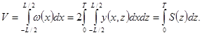 где w(х) – площадь погруженной части теоретического шпангоута с абсциссой х; у(x,z) – ордината точки на теоретической поверхности корпуса, симметричного относительно ДП; S(z) – площадь теоретической ватерлинии, параллельно ОП. - Координаты центра величины xc и zc (ус =0 в силу симметрии корпуса судна относительно ДП):