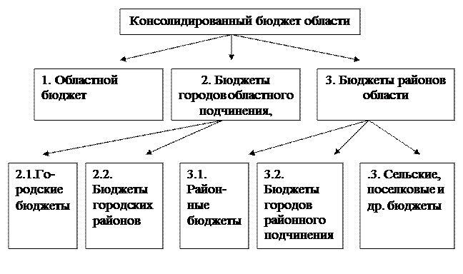 Рис.2. Структура консолидированного бюджета области На рис. 2 представлена структура консолидированного бюджета области, который (как и консолидированные бюджеты других субъектов Федерации) выполняет функцию объединения бюджетных показателей территории. В нем находят отражение результаты разработки и реализации бюджетно-финансовой политики в регионе; условия сбалансированности доходов и расходов в целом по бюджету субъекта Федерации. 1.2. Принципы бюджетной системы Бюджетным кодексом Российской Федерации (Глава 5) законодательно закреплены следующие принципы бюджетной системы Российской Федерации: - единства бюджетной системы Российской Федерации; - разграничения доходов и расходов между уровнями бюджетной системы; - самостоятельности бюджетов; - полноты отражения доходов и расходов бюджетов, бюджетов государственных внебюджетных фондов; - сбалансированности бюджета; - эффективности и экономности использования бюджетных средств; - общего (совокупного) покрытия расходов бюджетов; - гласности; - достоверности бюджета; - адресности и целевого характера бюджетных средств. Принцип единства бюджетной системы означает единство правовой базы, денежной системы, форм бюджетной документации, единство принципов бюджетного процесса, санкций за нарушения бюджетного законодательства, а также единый порядок финансирования расходов бюджета, единый порядок финансирования расходов бюджетов всех уровней бюджетной системы, ведения бухгалтерского учета средств федерального бюджета, бюджетов субъектов Российской Федерации, местных бюджетов. Принцип разграничения доходов и расходов между уровнями бюджетной системы означает закрепление соответствующих видов доходов (полностью или частично) и полномочий по осуществлению расходов за органами государственной власти Российской Федерации, ее субъектов, органами местного самоуправления. Принцип самостоятельности бюджетов означает: право законодательных органов государственной власти и органов местного самоуправления на каждом уровне бюджетной системы самостоятельно осуществлять бюджетный процесс; наличие собственных источников доходов бюджета каждого уровня; законодательное закрепление регулирующих доходов бюджетов, полномочий по формированию доходов соответствующих бюджетов; право органов государственной власти и органов местного самоуправления самостоятельно в соответствии с законодательством определять направления расходования средств соответствующих бюджетов и источники финансирования дефицитов соответствующих бюджетов; недопустимость изъятия доходов, дополнительно полученных при исполнении законов (решений) о бюджете, сумм превышения доходов над расходами бюджетов и сумм экономии по расходам бюджетов; недопустимость компенсации за счет бюджетов других уровней потерь в доходах и дополнительных расходов, возникших в ходе исполнения законов (решений) о бюджете, за исключением установленных законом случаев. Принцип полноты учета бюджетных доходов и расходов бюджетов, бюджетов государственных внебюджетных фондов означает, что все доходы и расходы бюджетов, внебюджетных фондов и иные определенные законом обязательные поступления, подлежат отражению в бюджетах, бюджетах внебюджетных фондов в обязательном порядке и в полном объеме. Все государстве